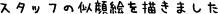 絵が得意で、今日はスタッフの似顔絵を描きました。どう、似てるじゃろ?