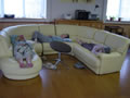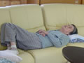 ソファにまあるくなってお昼寝中。のんびり、気持ちよさそう。