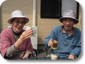 | 心地よい気候に誘われて、庭でお茶を。ビールで乾杯もいいものです。 |