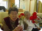 スタッフからのカーネーションに顔もほころぶ。
