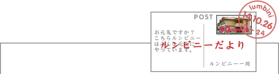 庭のキンモクセイがいい香りを漂わせ始め、ルンビニーの周囲の田も稲刈りが終わり、いよいよ秋本番です。松山は降水量が少なく、時間断水の心配も一時はありましたが、何とかそのようなこともなく夏を越し、秋を迎えることができました。