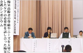 痴呆の在り方を考えるシンポジウム「呆(ぼ)けはみんなの問題、私の問題、あなたの問題〜考えよう!新しい痴呆介護」(呆け老人をかかえる家族の会愛媛県支部主催)がこのほど、松山市内であった。家族や介護関係者ら約200人が参加。パネリストらは「痴呆のある本人の生活を支援するという視点が大切」と訴えた。