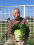 やっと収穫の時期がやってきました。Kさん自ら包丁を持って1つずつ根元から白菜を切り取っていきました。真剣な表情で作業を終えた後、写真を撮る時には、”ニッコリ”でした。