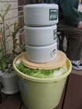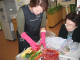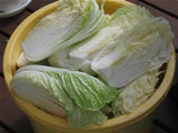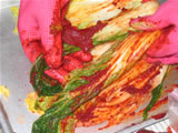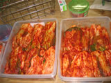 持ち帰った白菜はKさんの息子さんのお嫁さんに手ほどきを受けたスタッフGとスタッフAの手によってキムチ漬けとなり、みんなの口に入りました。Kさん手作りの白菜でできたキムチ漬け、それはなんとも感動の味でした。