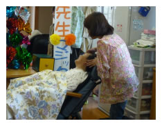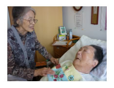 平成22年3月26日に天国に旅立たれました。ご家族と話し合って、死後入浴(湯灌)を行いました。湯船の中で、ゆっくりと体を温め、髪を洗い、体を洗うと、頬はピンク色に染まりました。「ありがとう!気持ちよかった」と言っているかのように安らかな顔をされていました。「気持ちよかった?すっきりしたやろ〜 髪も体もいいにおいよ」スタッフが声をかけます。