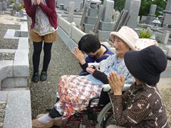 着いてすぐに家族さんの顔を見て、少しホッとしたのか柔らかい表情になり、ご主人のお墓に何度も何度も手を合せていました。思っていたお墓参りに行けた事が嬉しかったのか、お墓の前で家族さんと手を合わせたり、話をしたりしているCさんの顔は満足そうな顔に見えました。
