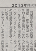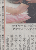 まず、最初にアイスブレーキングとして「どんぐりころころ」と「ああ人生に涙あり」の替え歌に全員で挑戦しました。「どんぐり〜ころころ〜」の歌詞をああ人生に涙ありの曲で歌いました。「ああ人生に涙あり」もどんぐりころころの曲でそれぞれ歌いました。どちらもなじみの歌ですが替え歌でコラボすることで頭(脳)の伝達となり脳トレになるという事や自分たち自身が創作して新しいものを作っていく事で創作介護を行うことができると話されました。その話の中で新しいとは何かという事に触れられました。