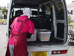 ルンビニーの分ができあがったら、自動車に積んで配達も行います。