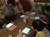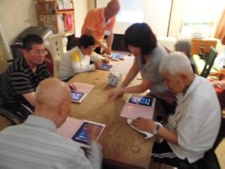 9月から毎週土曜日に1時間、5人程度を対象に認知症予防、進行の緩和を目的とし、iPadを使った脳トレを開始しました。