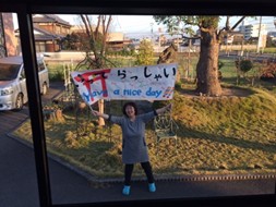 | 数カ月前から計画を立てワクワクしながらこの日を待ち望み、スタッフ赤松の‘いってらっしゃい’に見送られ、いざ出発! |