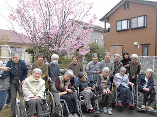 この桜は前理事長がアショカを立ち上げる時に知人から頂いた桜だと聞いています。アショカは今年で開設から14回目の春を迎えます。この陽光桜も14回目の開花です。この桜がアショカの春の訪れを教えてくれるのと同時に、ご入居者に季節の確認と心の安らぎを与えてくれます。