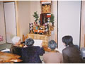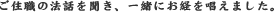 ご住職と一緒にお仏壇の前でお経を唱えました。