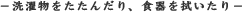 洗濯物をたたんだり、食器を拭いたり、できることはお手伝いします。