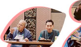 1人ずつ向き合ってお話を聞いてもらったり、みんなで法話を聞かせてもらったり、一緒に念仏を唱えたりします。
