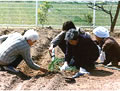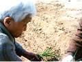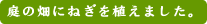 | きれいに耕された畑にはじめての野菜を植えます。まずはねぎから。次は何かな?じゃがいも?さつまいも?なす?トマト?きゅうり? |