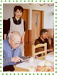 ろうそくの火を吹き消した後、みんなでケーキをおいしくいただきました。 |