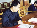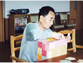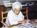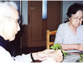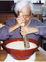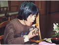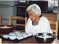 今までは左手で、それもスプーンで食べていたのですが、今日は右手でお箸を使って食べています。ゆっくりですが上手に食べています。