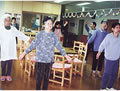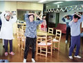 ”さよ〜なら、さようなら元気でいてぇねぇ〜”の歌に合わせてタオル体操