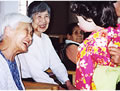 川田さんの安来節には笑顔、笑顔の入居者でした。元気くんも大人気。