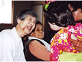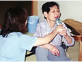 さくらちゃんとのふれあいでは、「こんにちは」、「あらっ、かわいい」という言葉と共に、自然に口元もほころんできます。