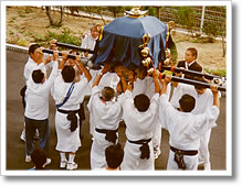 10月5日、6日は子供会のちょうちん行列も来てくれました。玄関でおみこしを見ました。