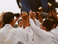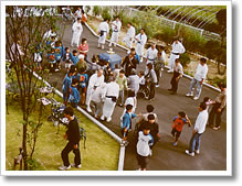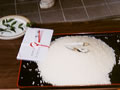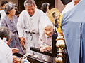 にぎやかにおみこしがやって来ました。神主さんにお祓いもしていただきました。おみこしを一緒にかついだり、おみこしに触ったり、入居者の方たちもそれぞれに楽しんでおられました。
