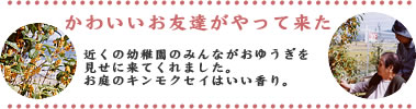 先月のお誕生日の2名が、近くの久枝幼稚園で一緒にお誕生日をお祝いしました。