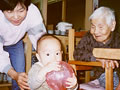 赤ちゃんがいるだけで、みんなにこにこしてしまいます。赤ちゃんもたくさんのおじいちゃん、おばあちゃんに囲まれてびっくりかもしれませんね。 また遊びに来てね。