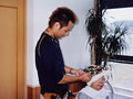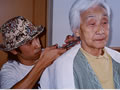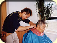 今回の散髪は近くの美容院から来てもらったので、こんなに若くてかっこよい美容師さんでした。なんだか気分がうきうきしたりします。あまりに気持ちよくてウトウトする場面も。こんなことめずらしいことなんですよ。すっかり安心しきっている証拠です。