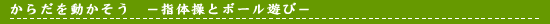指を動かすことは頭の体操にもなるそうです。だけど指の体操ってなかなか難しいんです。 ボール遊びはみんなが大好きな遊びのひとつです。円くなって座って、ボールを投げ合います。