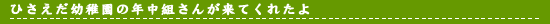ひさえだ幼稚園の年中組さんがかわいいおゆうぎを見せに来てくれました。踊りはプロ級!とても上手で、思わず手拍子が出たりしました。入居者のみなさんもかわいいみんなに釘付け!