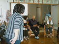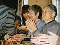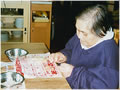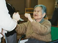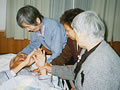 こちらは5ヶ月の赤ちゃんです。「ありゃ〜、かわいいのぉ。」と、みんな赤ちゃんが来ると表情が生き生きしています。「べろべろばー」とあやし方もさすが子育ての経験者、おみごとです。