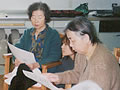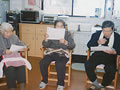 毎月1回、音楽療法にやってきてくださるボランティアのポコアポコさん。入居者のみなさんは歌が大好きなので、この日をとても楽しみにしています。歌を歌う他にも、楽器を使ったり、手をたたいたり、いろいろな音で楽しいひとときを過ごします。