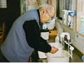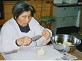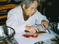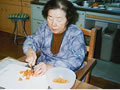 もやしのひげ根取り。この下ごしらえがおいしさを左右するのよ。