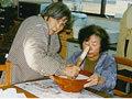 すりばちを押さえててね。ごりごりごりごり、力がはいります。