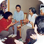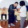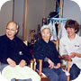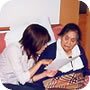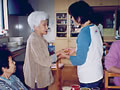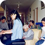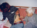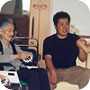 ルンビニーに来る前にお世話になった方が訪ねてくれるととてもうれしそう。 娘さんに髪の毛を刈ってもらって。