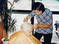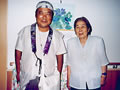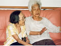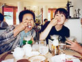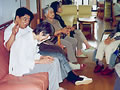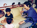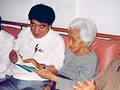 息子さんと窓辺で(右) ご主人と久しぶりにおしゃべりしました。(左)