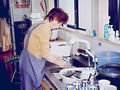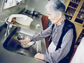 後片付けも分担して。みんなの分を洗うとなると、結構たくさんになるんですよね。洗い終わったお茶碗を私は拭きますよ。