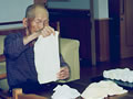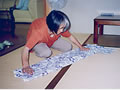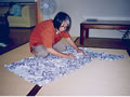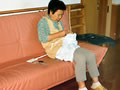 着物のたたみ方、まだ忘れちゃいないわよ。ほらっ、こんなにきれいに。 私はソファでウエストのゴム通し。
