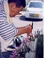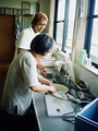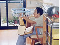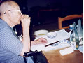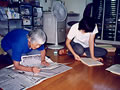 スタッフが冊子を作っていると、隣に来て新聞を読み始めました。
