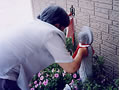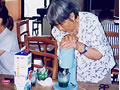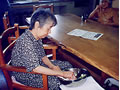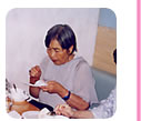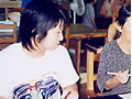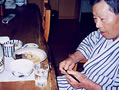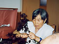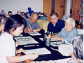 新居浜からお坊さんが見学に来られ、皆でお経を唱えました。また、中学校の(国語の)先生をされているNさんが研修に来られ、皆で習字を習いました。そのNさんから