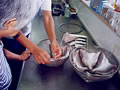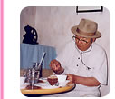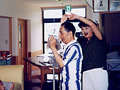 Nさんのかき氷屋さんの開店です。「私食べてないよ。」とKさん。鏡に映した舌を見て、食べたことを納得です。