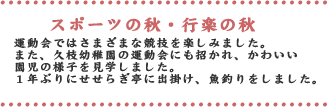藤原胃腸科デイケアと合同での運動会がありました。魚釣り競争、パン食い競争、各競技を入居者の方、ご家族の方、スタッフみんなで楽しみました。近所の子供達も飛び入り参加してくれました。