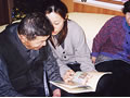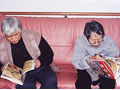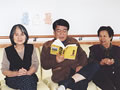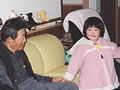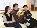 「舌切雀、お宿はどこだ」スタッフの読む昔話に耳を傾けています。