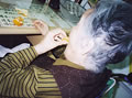 なんと!寝ながらハーモニカを演奏。かと思えば、起きてもやっぱり演奏。