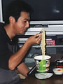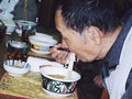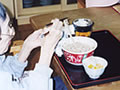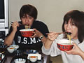 今日はカップ麺の日です。入居者のみんな、スタッフ、「ズルズルズル、うまいなあー。」