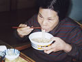 事務所が大好きなYさん。机に向かい、おもむろにみかんの皮をむき、パクッ。