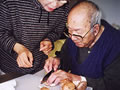 「こう切ったらええんか?」としいたけを。
