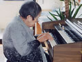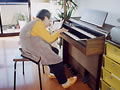 楽譜を見ながらポロロ〜ン。楽譜がなくてもこの通り、両手で弾けるのよ。