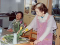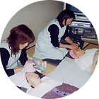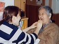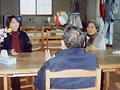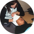 メークセラピーでは、横になって顔のマッサージを体験。エステ気分でいい気持ちでした。しわも伸びたかしら。